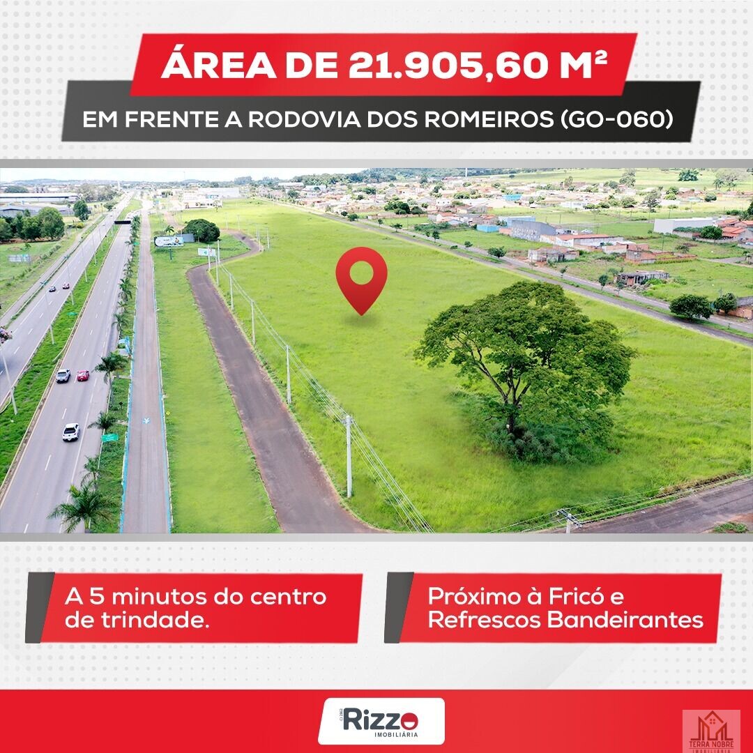 Com 21.905,60 m², a área está localizada em frente a Rodovia dos Romeiros, a 5 minutos do centro de Trindade e próxima a indústrias como Refrescos Bandeirantes (Coca-Cola) e Fricó.